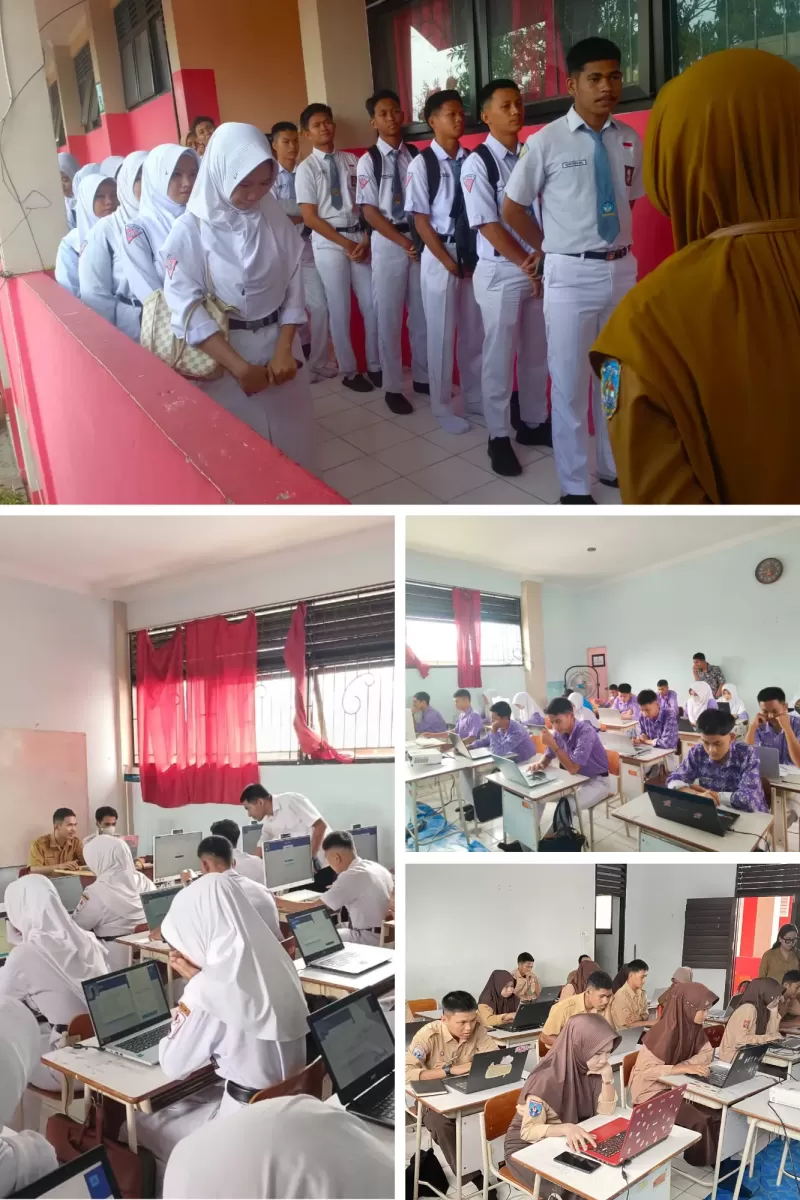 Setiap harinya, pelaksanaan TKA dibagi menjadi tiga sesi, dimulai dari pagi hingga sore hari, untuk menyesuaikan dengan ketersediaan perangkat. Mengingat keterbatasan jumlah laptop, pihak sekolah berinisiatif meminjam perangkat dari bapak dan ibu guru agar seluruh peserta dapat mengikuti ujian dengan lancar dan tertib.